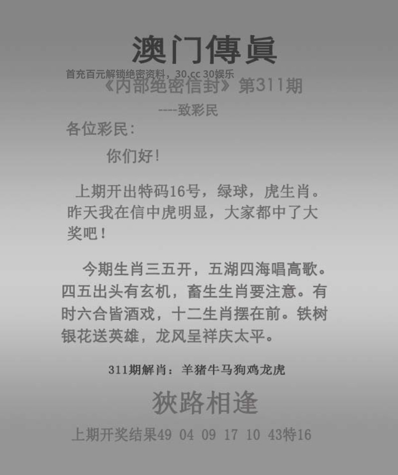 312期绝杀三肖『虎蛇鼠』开龙14中